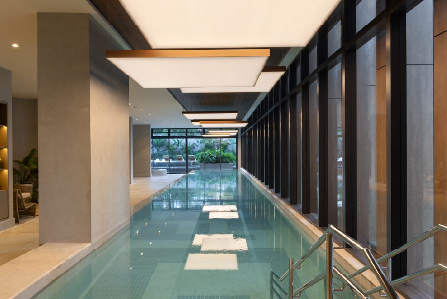 • Piscina coberta: com raia de 25 metros e integração visual com o paisagismo tropical