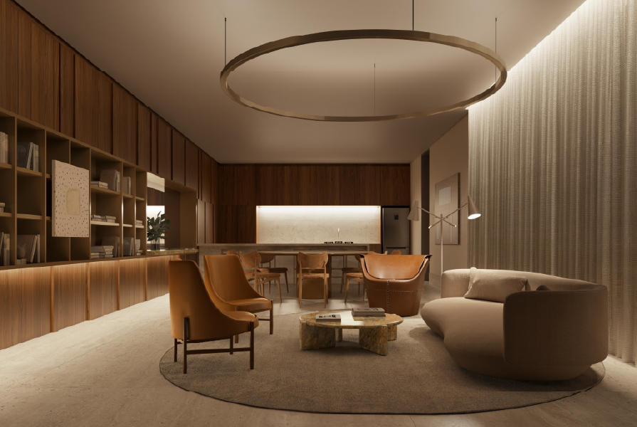 A curadoria de Nildo também valoriza o design brasileiro, com peças de autores consagrados e jovens talentos. “Queríamos que cada detalhe tivesse alma e que os moradores se reconhecessem nesse espaço com o passar dos anos”, resume.