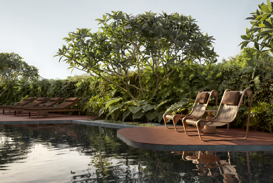 Nos ambientes de lazer, a atmosfera de hotelaria de luxo é reinterpretada com identidade brasileira. Os salões de festas e convivência foram pensados como extensões da casa, com mobiliário acolhedor e versátil. O salão de jogos se integra ao espaço principal, criando fluidez entre os usos. Já a academia, a piscina coberta e as áreas de bem-estar traduzem o conceito de refúgio urbano. “A paz e o silêncio são luxos contemporâneos. Por isso, criamos espaços que convidam à pausa, ao descanso”, resume Nildo.