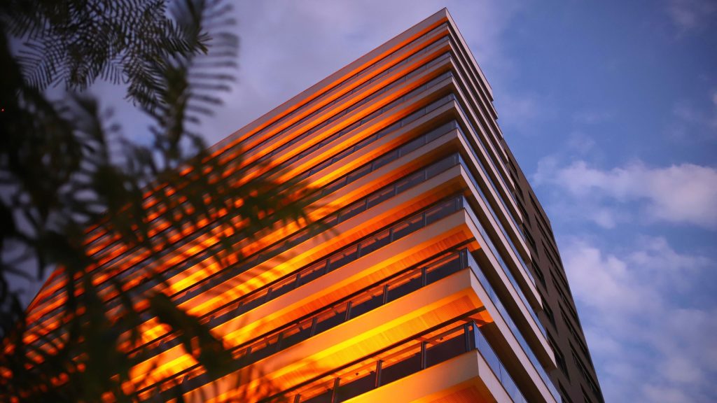 Lumini: Fachada explora vidro e iluminação natural com elegância. Foto: Cyro Clemente