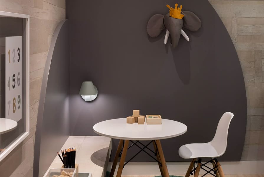 Elementos interativos, como um quadro para brincar ou anotar as tarefas a serem realizadas, ou uma parede de quadro negro, são opções a se considerar para um design atemporal. Ao escolher cuidadosamente os elementos lúdicos, pense em cada detalhe.
