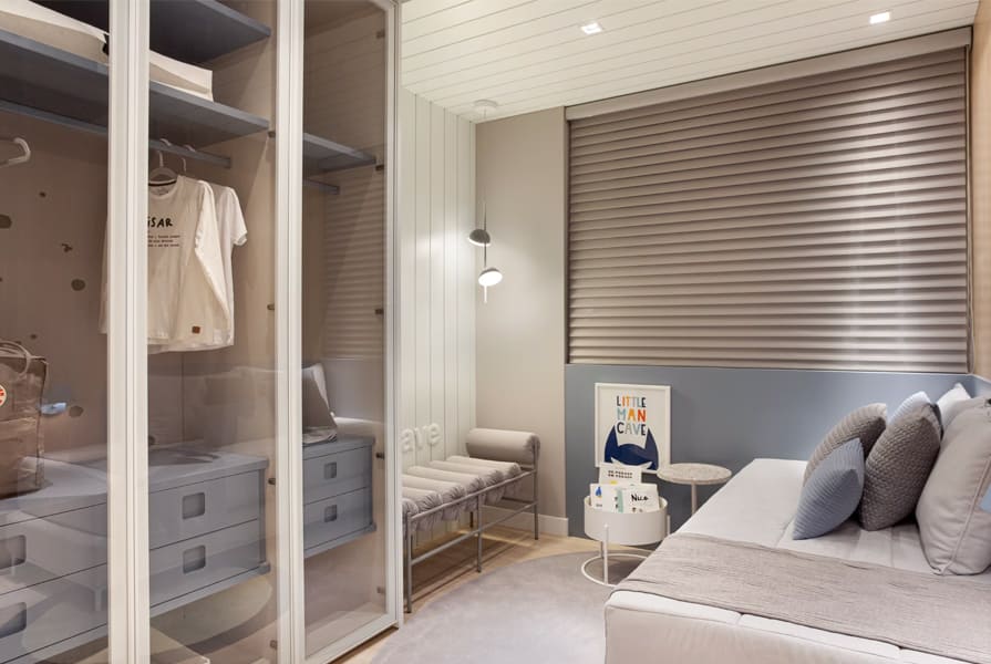 Para manter a sofisticação do ambiente, é fundamental encontrar um equilíbrio entre a diversão e a elegância. Pode-se utilizar desde baús, para manter brinquedos bem guardados após as brincadeiras, até selecionar peças de mobiliário que possam servir como espaço de armazenamento, como uma cama com gavetas embutidas ou uma cama extra.