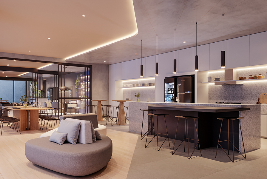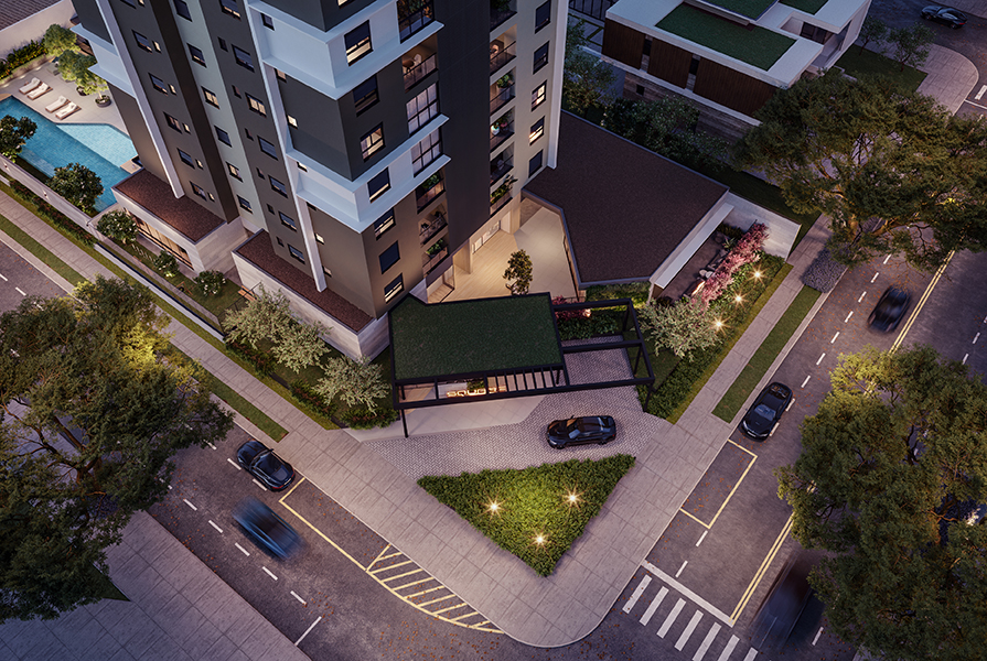 O próprio nome do empreendimento antecipa o conceito do novo Plaenge. Square, que significa praça em inglês, inspira um projeto que organiza os ambientes a partir de espaços de encontro. As formas geométricas estruturam áreas interligadas por praças internas, criando percursos fluidos e convidativos. O edifício dialoga com a paisagem do bairro e se integra ao entorno como uma extensão da vida urbana.